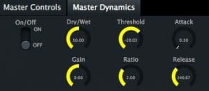 On to the “Master Controls” and “Master Dynamics” settings these help a lot when you have a rather strong sound effect like a Laser gun shot or Screaming banshee that needs some control. These are master controls so there’s no setting these up for individual sfx libraries as with the Transient Controls. Master Controls consists of Master Wet Dry, how much of the original sound vs the new designed sound, and Master volume, then the Master Dynamics, has everything you would expect from a compressor, to control the dynamics of the master signal.